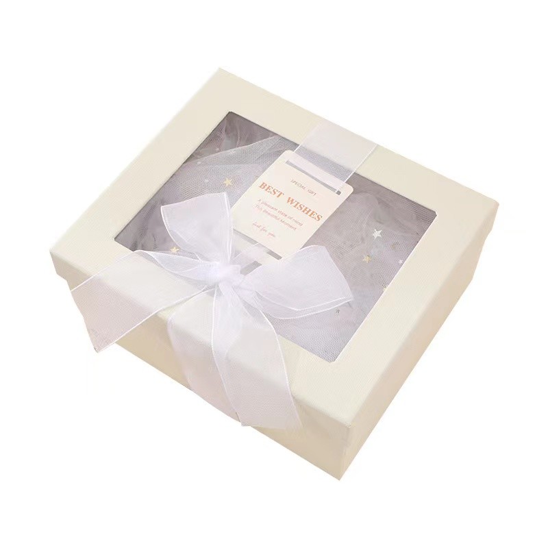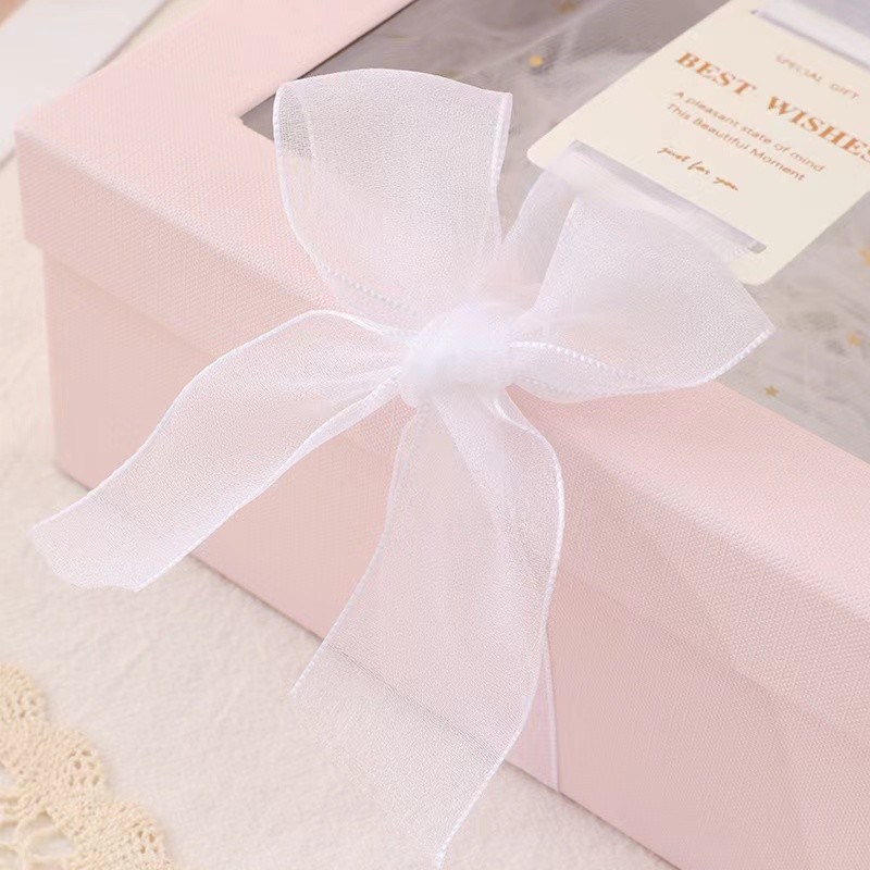 Kotak kado set kado putih transparan set kado kotak ulang tahun PVC dengan sutra dan kotak kertas kado kosmetik rafie