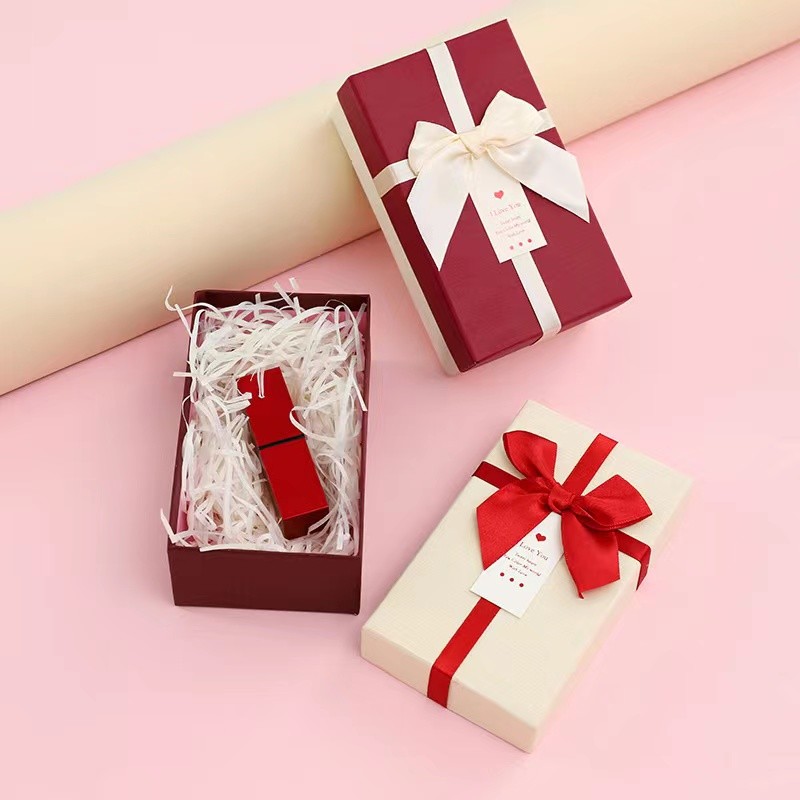 Dua Potong Bentuk Kotak Kustom Lip Gloss Dengan Pita Dan Kotak Lip Gloss Timbul