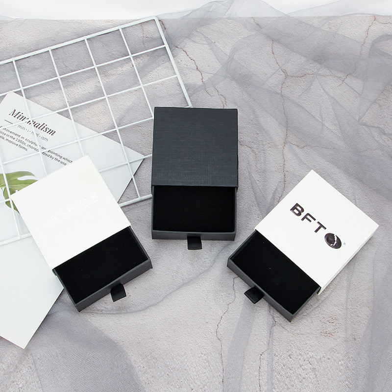Tas Hadiah Perhiasan Kardus Kalung Kotak Gambar Paket Slide Laci Kotak Kertas Dengan Kotak Perhiasan Bulu Hitam |